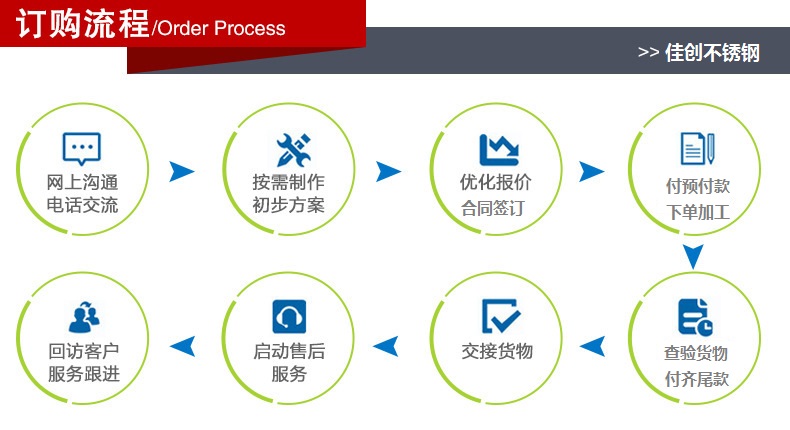 無錫市佳創不銹鋼有限公司,位于長江三角經濟圈中心城市——全國較大的不銹鋼集散地——無錫,依托無錫不銹鋼市場良好的地理環境,水陸交通十分便捷,緊連312國道、滬寧高速、提貨及時方便,并可為客戶提供加工、貨物配送等業務,極大地方便了廣大客戶,銷售網絡遍及全國各地,擁有大批量忠誠的客戶。