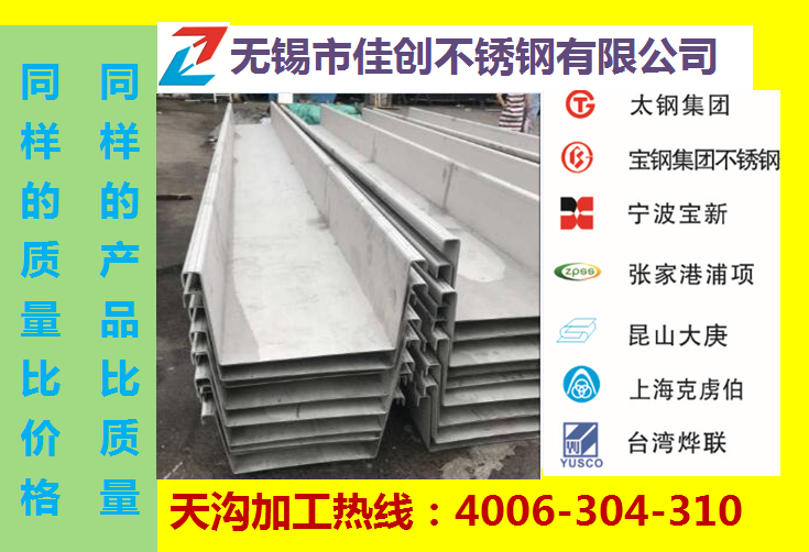 不銹鋼排水槽、天溝一般采用304冷軋不銹鋼板加工,業內也叫做18/8不銹鋼。耐高溫800℃,具有加工性能好,韌性高的特點,廣泛使用于工業和家具裝飾行業和食品醫療行業。佳創不銹鋼排水槽、天溝常用基材規格
